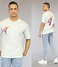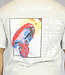 Dit katoenen shirt heeft korte mouwen en een ronde halslijn. Je kan eventueel de mouwtjes oprollen om hem net wat stoerder te maken! Hij valt oversized. Aan de voorkant staat een afbeelding op de borst en op de rug de tekst: 'Illusion' met daaronder dezelfde afbeelding.