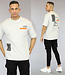 Dit oversized shirt heeft een ronde halslijn en korte mouwen. Zowel de voor- als de achterkant zijn voorzien allerlei zwarte teksten en oranje details. Wil je een stoerdere look? Rol de mouwen iets op.