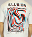 Dit katoenen shirt heeft korte mouwen en een ronde halslijn. Je kan eventueel de mouwtjes oprollen om hem net wat stoerder te maken! Hij valt oversized. Aan de voorkant staat op de borst de tekst: 'Illusion'. Op de rug staat een tekst en een gekleurde bedrukking.