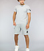Deze mannen set bestaat uit een short en een shirt. De korte broek heeft een elastische tailleband met vetersluiting en twee steekzakken aan de voorzijde. Het shirt is aansluitend en voorzien van korte mouwen en een ronde halslijn. Beide items bevatten bevat veel stretch. Het shirt is voorzien van een klein spiegeltje op de mouw en deze is ook terug te vinden op de cargo zakken van de short!