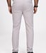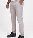 Deze lichtgrijze pantalon heeft een strakke en moderne slim fit pasvorm. De stof is glad, stevig en licht elastisch, waardoor de broek mooi aansluit zonder in te leveren op comfort. De tailleband is strak gesneden met lusjes voor een riem en een nette gulp met verborgen sluiting. Aan de voorkant zitten twee diepe steekzakken.