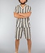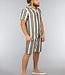 Deze set is gemaakt van een lichtgewicht linnenlook stofje. De set is voorzien van een blouse met een omgeslagen kraag en een knoopsluiting bestaande uit vijf knopen. De short heeft in de taille een elastische band met veterdetail. Het korte broekje is voorzien van twee diepe steekzakken aan de voorkant.