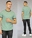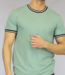 Trefwoorden: mintgroen heren t-shirt, groen mannen shirt met korte mouwen, ronde halslijn, stretch, gestreepte boorden, streeppatroon
