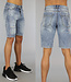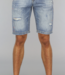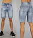 Trefwoorden: blauwe heren korte broek met wassing, old look denim short, jeans met verfspatten, steekzakken, jeans short, spijkerstof, korte jeans, knoopsluiting, scheuren, damaged, light washed