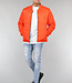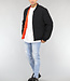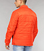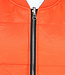 Wat deze jas uniek maakt, is dat de jas omkeerbaar is! De ene kant is gemaakt van een mooie oranje stof en de andere kant van een zwarte stof. Ook is de jas licht gewatteerd. De jas heeft een kraagje en lange mouwen met aan de uiteindes van de mouwen aansluitende boorden. De jas heeft een ritssluiting over de gehele lengte.
