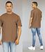 Trefwoorden: basic bruin heren t-shirt, mannen shirt met korte mouwen, casual, asymmetrisch, katoen, oversized