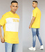 Dit katoenen shirt heeft een oversized model en valt wat langer. Hij heeft korte mouwen met een vaste omslag en een ronde halslijn. Het shirt is geel met wit en op de borst staat in gele letters: ''CULTURE''. Dit woord ligt erop en is dus niet geprint.