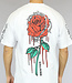 Trefwoorden: wit katoenen heren t-shirt met print, oversized mannen shirt met korte mouwen, opdruk, roses, rozen, prikkeldraad, loose-fit, ronde halslijn, katoen