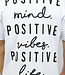 Dit T-shirt is gemaakt van een fijne katoenen stof. Het shirt heeft korte mouwen en een ronde hals. Het T-shirt is wit van kleur en daarom een goede basic. De voorkant van het shirt heeft een opdruk met een motiverende tekst "Positive mind, positive vibes, positive life". De achterkant is effen van kleur.