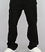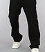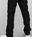 Deze broek is gemaakt van een zwarte denim stof. Hij is dus erg stevig en heeft een relaxed fit waardoor de broek een oversized look krijgt. Aan de voorzijde heeft hij twee steekzakken en twee zakken aan de zijkant van de broek. Het is een soort werkbroek look waardoor hij enorm veel opbergmogelijkheden heeft. Op de achterzijde twee kontzakken en zes lusjes waar je je eigen riem doorheen kan steken. de sluiting bestaat uit een knoopsluiting met ritssluiting.