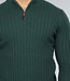 Deze fijne heren trui is gemaakt van een ribgebreide zachte stof. De trui bevat veel stretch en heeft zowel aan het eind van de mouwen als onderaan de trui een aansluitende boord. De bovenkant van de trui is voorzien van een opstaande kraag welke je met een kwart lange rits dicht kan doen. De trui valt aansluitend en is erg comfortabel.