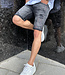 Deze antracietkleurige spijkershort voor heren heeft een stoere look door de gescheurde details en rode verfspatten. De broekspijpen zijn licht opgerold en geven de short een casual look. De wassing is donkergrijs met een licht verwassen effect. De short heeft vijf zakken en een 4-knoopsluiting. Dankzij de stretch zit hij comfortabel en beweegt hij makkelijk mee. Een fijne keuze voor een casual zomerdag.