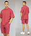 Trefwoorden: oversized rode mannen set, old look heren streetwear met korte mouwen, elastische tailleband, vetersluiting, steekzakken, short, korte broek, loose-fit, t-shirt, ronde halslijn, wassing, vintage washed
