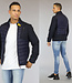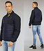 Trefwoorden: donkerblauw heren jack, blauwe gewatteerde mannen jas, voorjaarsjas, ritssluiting, zakken, steekzakken, sportieve jas