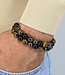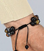 Deze stoere heren armband is gemaakt van een touwtje met zwarte en bruine kralen. Je kunt het touwtje schuiven door middel van een gevlochten deel in het midden. Je kunt de armband dus veranderen van lengte, super handig!