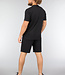 Deze superfijne heren short set is gemaakt van een zachte katoenen stof. De set bestaat uit een short en een T-shirt. Het setje valt lichtelijk oversized en de short bevat een elastische taille met veterdetail. Tevens Beschikt de short ook over twee diepe steekzakken.