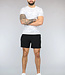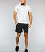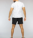 Dit trainingspak is gemaakt van een elastische stof en bestaat uit een shirt en een korte broek. Het shirt heeft korte mouwen en een ronde halslijn. Het shirt is voorzien van een camouflage print. De korte broek heeft een elastische tailleband met vetersluiting.