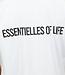 Dit T-shirt is gemaakt van een fijne katoenen stof. Het shirt heeft korte mouwen en een ronde hals. Het T-shirt is wit van kleur en daarom een goede basic. De voorkant van het shirt heeft de tekst "Essentielles of Life" en de achterkant heeft een grote print met dezelfde tekst.