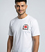 Dit witte T-shirt heeft een opvallende rode esdoornblad print met de tekst “ICON” en “ORIGINAL” op zowel de borst als de rug. De print geeft het shirt een stoere en frisse uitstraling.