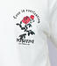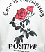 Dit T-shirt is gemaakt van een fijne katoenen stof. Het shirt heeft korte mouwen en een ronde hals. Het T-shirt is wit van kleur en daarom een goede basic. De voorkant van het shirt heeft een roos design met als tekst "Love is everlasting", "postive" en "have a simple life". De achterkant is voorzien van een grote roos en dezelfde tekst.