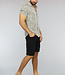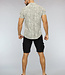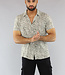 Dit blousje is gemaakt van een zachte, luchtige stof en heeft een blaadjes patroon. Het luchtige stofje zorgt ervoor dat de blouse perfect is voor een warme zomerdag. Hij heeft korte mouwen en een kraagje. Aan de voorzijde zit een knoopsluiting bestaande uit zeven knoopjes. Het overhemd bevat geen rek.