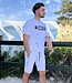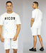 Deze set is voorzien van gekleurde verfspatten en is en gemaakt van een zachte jogging stof met rek. De set bestaat uit een korte broek en een T-shirt. De broek is voorzien van elastische tailleband met vetersluiting. Aan de voorkant zitten twee steekzakken met een ritssluiting. Het shirt heeft korte mouwen en een ronde halslijn. Aan de voorkant staat in grote zwarte letters ´#ICON´ Door het oversized model krijgt deze set een stoere look.