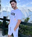 Trefwoorden: oversized witte mannen set, heren set met korte mouwen, elastische tailleband, veterdetail, steekzakken, short, korte broek, loose-fit, basic, short set, icon, loose-fit, verfspatten