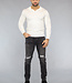 Witte Stretch Trui voor Mannen met Omgeslagen Kraag
