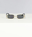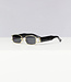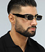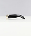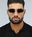 Deze zwarte zonnebril is perfect voor een festival! De zonnebril is voorzien van zwarte glazen en een goud breed montuur met open zijkanten en zwarte pootjes. Verder heeft de bril nog twee neuskussentjes.