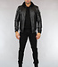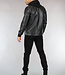 Deze coole jas is gemaakt van imitatieleer. De hals en de uiteindes van de mouwen hebben een aansluitende stoffen boord. De jas is voorzien van twee open steekzakken, twee zakken met rits en een borstzak met rits. De jas zelf is te sluiten met een ritssluiting.