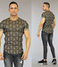 Trefwoorden: zwart heren t-shirt met print, mannen shirt met korte mouwen, ronde halslijn, elastisch, asymmetrisch, print, omgeslagen mouwtjes, aansluitend, beige print