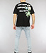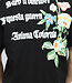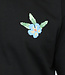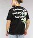 Dit T-shirt is gemaakt van een fijne katoenen stof. Het shirt heeft korte mouwen en een ronde hals. Het T-shirt is zwart van kleur en daarom een goede basic. De voorkant van het shirt heeft een bloem design en de achterkant is voorzien van een tekst.
