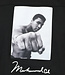 Dit T-shirt is gemaakt van een fijne katoenen stof. Het shirt heeft korte mouwen en een ronde hals. Het T-shirt is zwart van kleur en daarom een goede basic. De voorkant van het shirt heeft een opdruk van een bokser. De achterkant is effen van kleur.