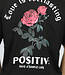 Dit T-shirt is gemaakt van een fijne katoenen stof. Het shirt heeft korte mouwen en een ronde hals. Het T-shirt is zwart van kleur en daarom een goede basic. De voorkant van het shirt heeft een roos design met als tekst "Love is everlasting", "postive" en "have a simple life". De achterkant is voorzien van een grote roos en dezelfde tekst.