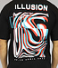 Trefwoorden: zwart illusion heren t-shirt, loose-fit mannen shirt met korte mouwen, print, opdruk, ronde halslijn, tekst, afbeelding, katoen, oversized