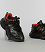 Deze stoere schoenen kunnen als sportschoenen worden gebruikt of gewoon casual worden gedragen. Hij heeft een grove zwarte zool met details. De bovenkant van de schoen is voorzien van gaatjes. Ze hebben zwarte dubbele veters en verschillende soorten materialen. Deze schoen draagt super comfy door de dikke zool dit geeft namelijk extra demping. De schoen is zwart en voorzien van rode details.