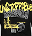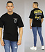 Dit T-shirt is zwart en op rug voorzien van een gele graffiti tekst met daaronder een afbeelding en andere tektsten. Dit item heeft korte mouwen en een ronde halslijn. Dit t-shirt valt oversized dus is het leuk de mouwen op te rollen en hij draagt super comfy!