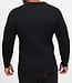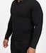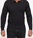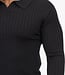Deze zwarte geribde trui heeft een stijlvolle en minimalistische uitstraling dankzij het verticale ribbreisel dat over de volledige stof loopt. De open polo hals is subtiel gevormd en zorgt voor een moderne, nette look zonder rits of knopen. De mouwen sluiten mooi aan en zijn afgewerkt met een strakke, ribgebreide manchet. De zoom is eveneens ribgebreid voor een aansluitende pasvorm.
