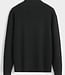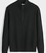 Deze zwarte half-zip herentrui is gemaakt van een fijn, verticaal ribgebreid breisel dat soepel en compact is. De hoge kraag sluit warm aan en is afgewerkt met een metalen korte ritssluiting met subtiele puller. De ribboorden aan de manchetten en zoom zorgen voor een nette en stevige pasvorm.