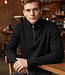 Zwarte Gebreide Half-Zip Herentrui met Fijn Ribstructuur en Hoge Kraag
