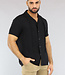 Dit blousje is gemaakt van een luchtige stof en heeft een gevouwen detail op de naad aan de voorkant. Hij heeft korte mouwen en een kraagje. Aan de voorzijde zit een knoopsluiting bestaande uit vijf knoopjes. Het overhemd bevat weinig rek.