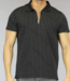 Trefwoorden: zwarte gestreepte heren polo, mannen shirt met korte mouwen, kraagje, ritsje, ritssluiting, stretch, strepen, krijtstreep