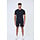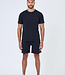 Deze zwarte set bestaat uit een effen T-shirt en bijpassende short. Beide items zijn gemaakt van stretchmateriaal met een gladde afwerking. Het T-shirt heeft korte mouwen en een ronde hals. De shorts vallen net boven de knie en zijn voorzien van een elastische band. Door de neutrale kleur is deze set makkelijk te combineren. Ideaal voor sportieve en casual gelegenheden.