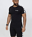 Deze zwarte heren set is de perfecte combinatie van stijl en comfort. Het T-shirt heeft een opvallende witte strook op de mouwen met zwarte esdoornbladprints die zorgen voor een sportieve en unieke look. De bijpassende short heeft dezelfde witte strook met bladprint aan de zijkanten, wat de set een mooi geheel maakt. Gemaakt van een zachte, ademende stof die comfortabel zit tijdens warme dagen of sportieve activiteiten. De short heeft een elastische tailleband met verstelbare koordjes, zodat je zelf de pasvorm kunt bepalen.