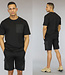 Trefwoorden: zwarte loose-fit mannen set, oversized heren set met zakken, stretch huispak met korte mouwen, katoen, elastische tailleband, veterdetail, steekzakken, short, korte broek, loose-fit, basic, short set, borstzak