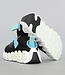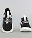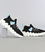 Deze sneakers vallen tot de enkel en zitten super comfortabel! Doordat de stof elastisch is kan je er gemakkelijk in- en uitstappen waardoor je een sok idee krijgt. Op de wreef zit een veter met grafisch patroon en tevens zitten er diverse details op de sneaker. De zool is grof geribbeld en bedekt met verfspatten.