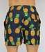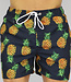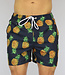 Trefwoorden: zwarte pineapple heren zwembroek, mannen swim short met ananas print, zakken, swimwear, korte zwembroek, badmode, kontzak