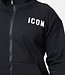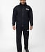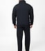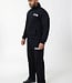 Deze zwarte two piece jogging set bestaat uit een comfortabele zip-up sweater en een bijpassende rechte jogger, beide uitgevoerd in een zachte, warme sweatstof. De sweater heeft een hoge kraag, een volledige ritssluiting, twee grote buidelzakken en een witte print links op de borst. De manchetten en onderboord zijn ribgebreid voor een aansluitende en stevige pasvorm.