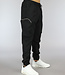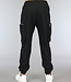 Trefwoorden: zwarte heren jogger, mannen cargo pofbroek, elastische tailleband, vetersluiting, steekzakken, zakken met rits