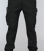 Deze cargo broek heeft een elastische tailleband met vetersluiting. Aan de voorkant zitten twee steekzakken en aan de achterkant zit één zak. Beide bovenbenen aan de zijkant voorzien van een grote zak met ritssluiting. De pijpen hebben aan het uiteinde een elastisch boord met klittenbandsluiting waardoor ze gaan poffen. Gemaakt van een gladde stof zonder rek.